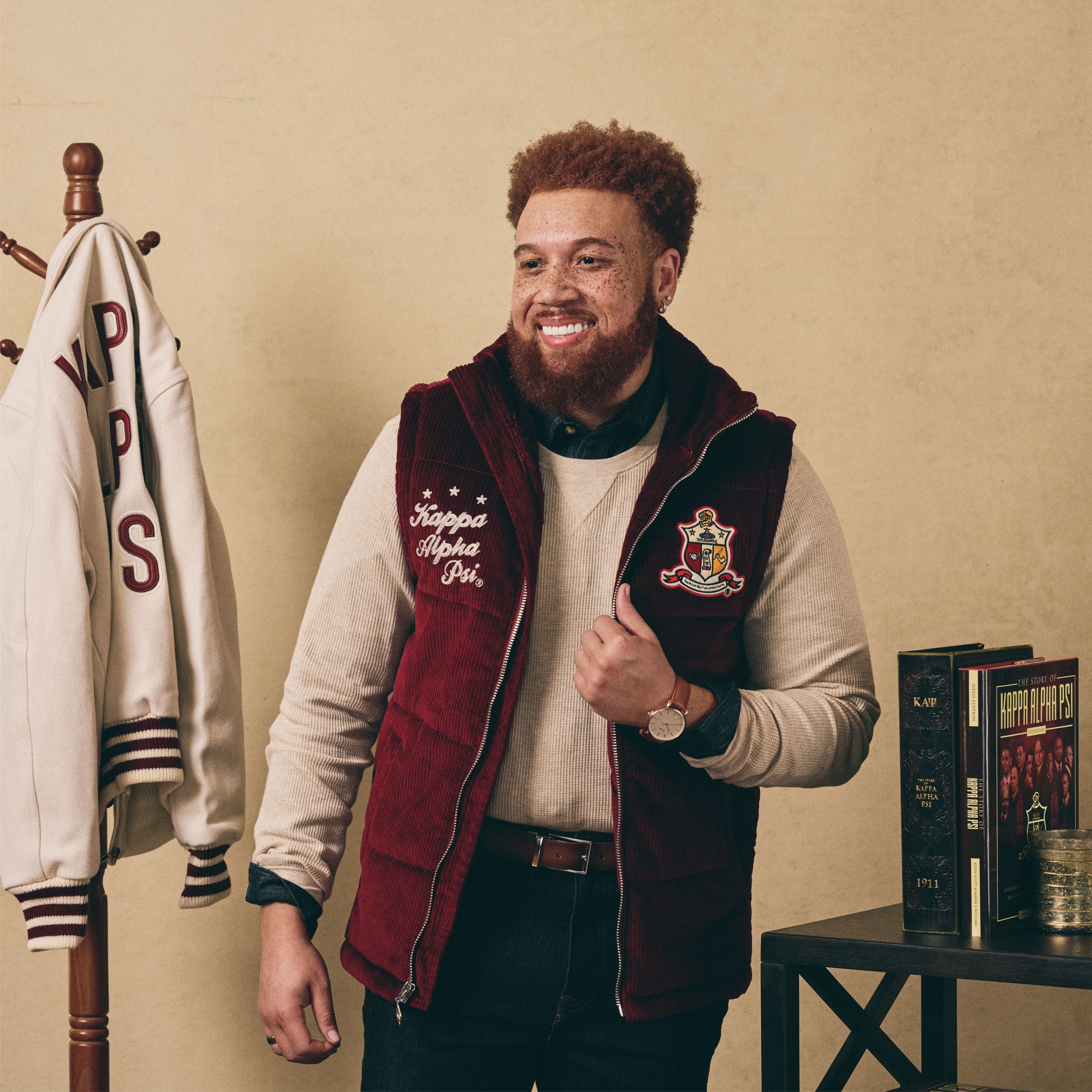 This classic krimson corduroy vest is a cold-weather staple. Crafted for the distinguished brother who appreciates both comfort and sophistication, it's a timeless addition to your wardrobe.