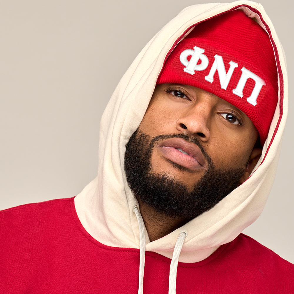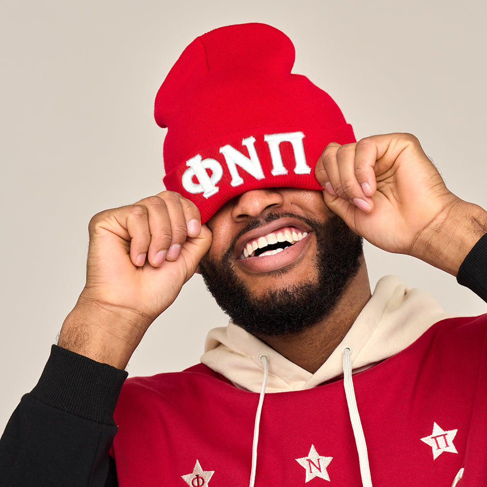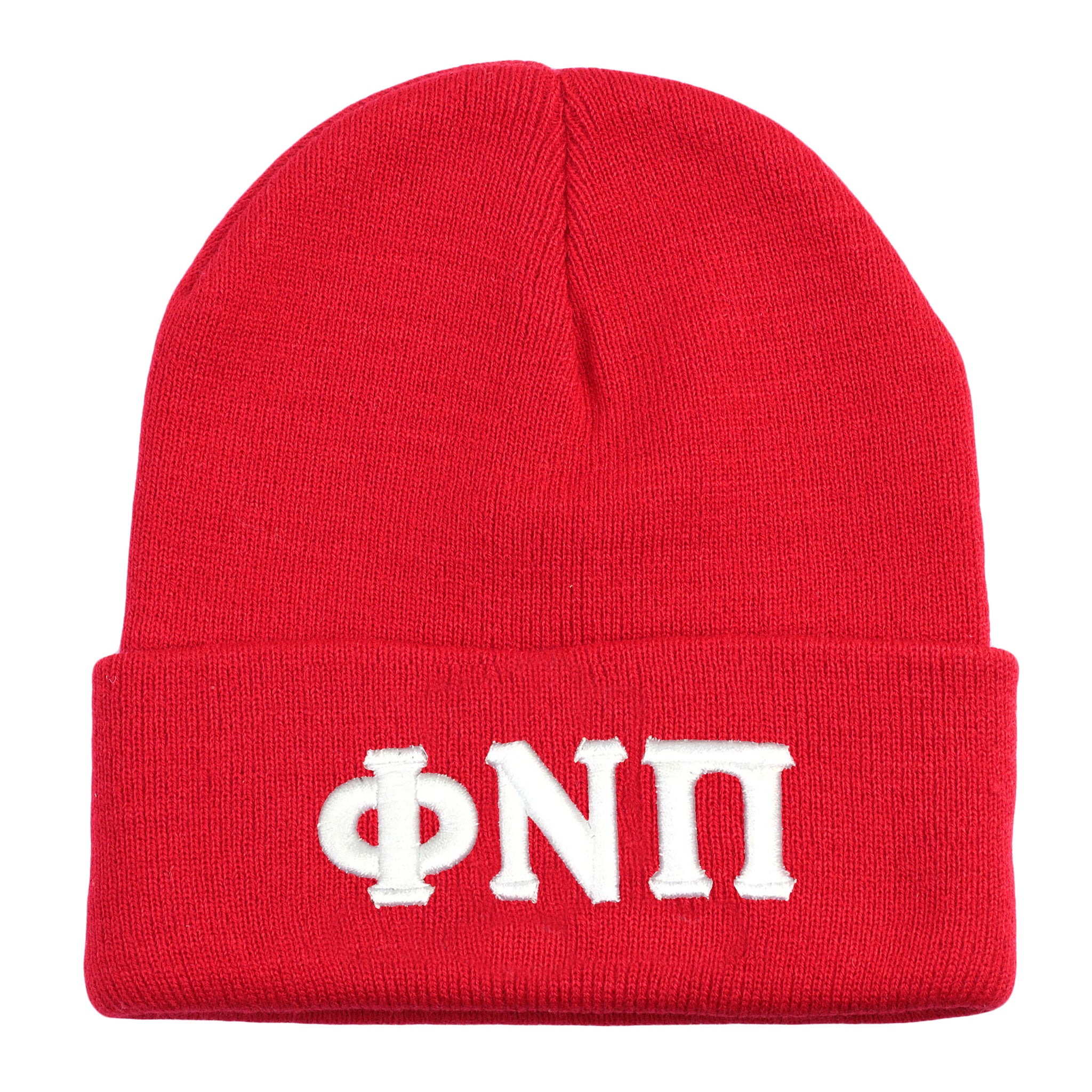Phi Nu Pi Greek Letter Knit Beanie Cap (Red)