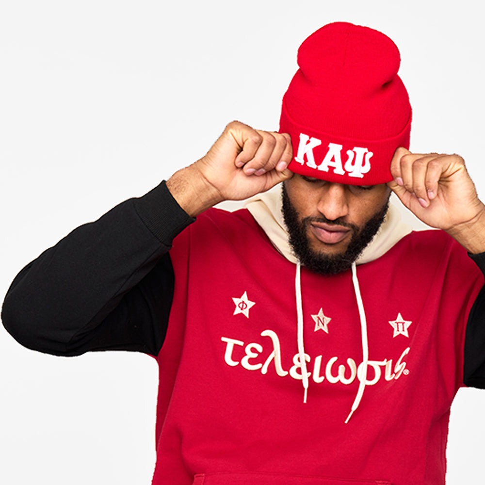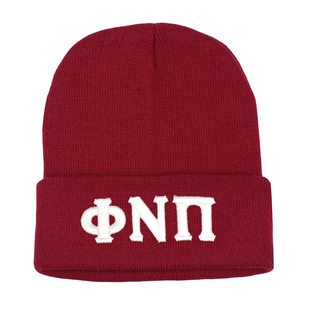 Phi Nu Pi Greek Letter Knit Beanie Cap (Krimson)