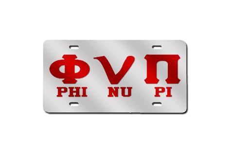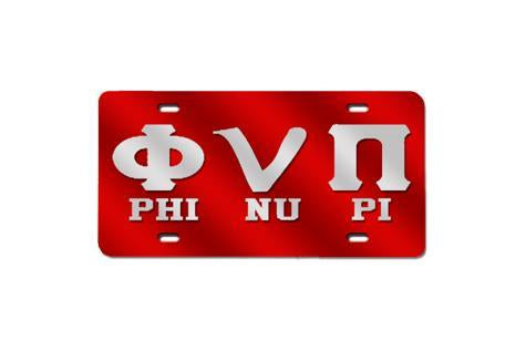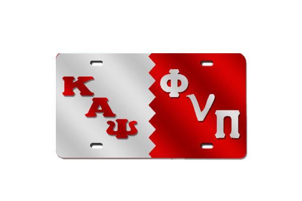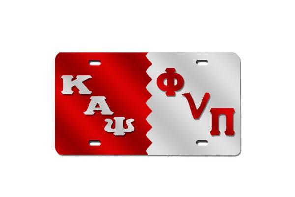 Phi Nu Pi Greek Letter Split License Plate (Red or Silver)