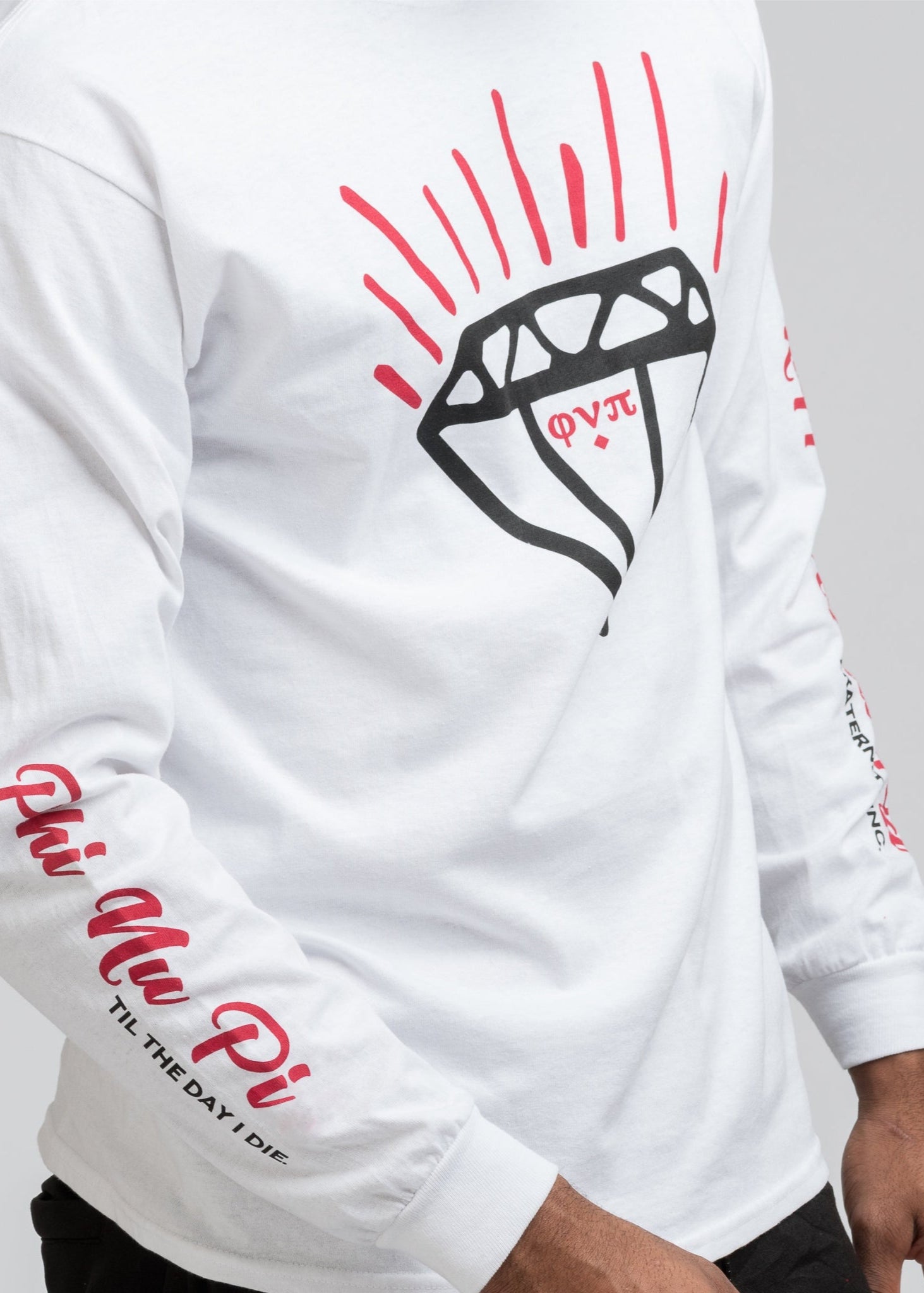 Diamond Phi Nu Pi Long Sleeve Tee (White)