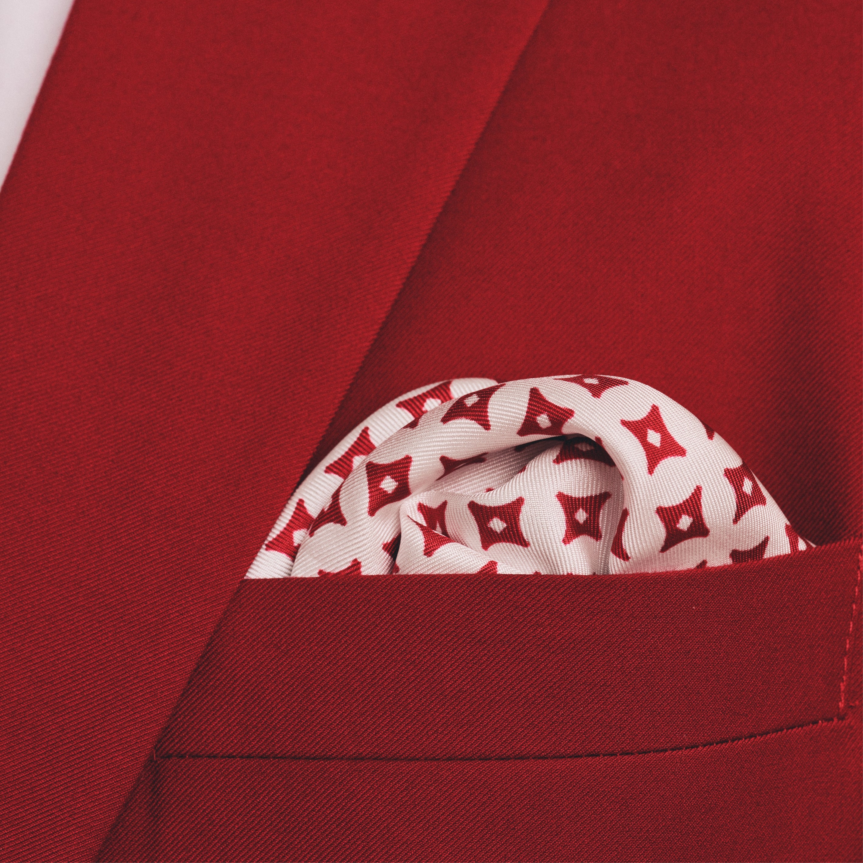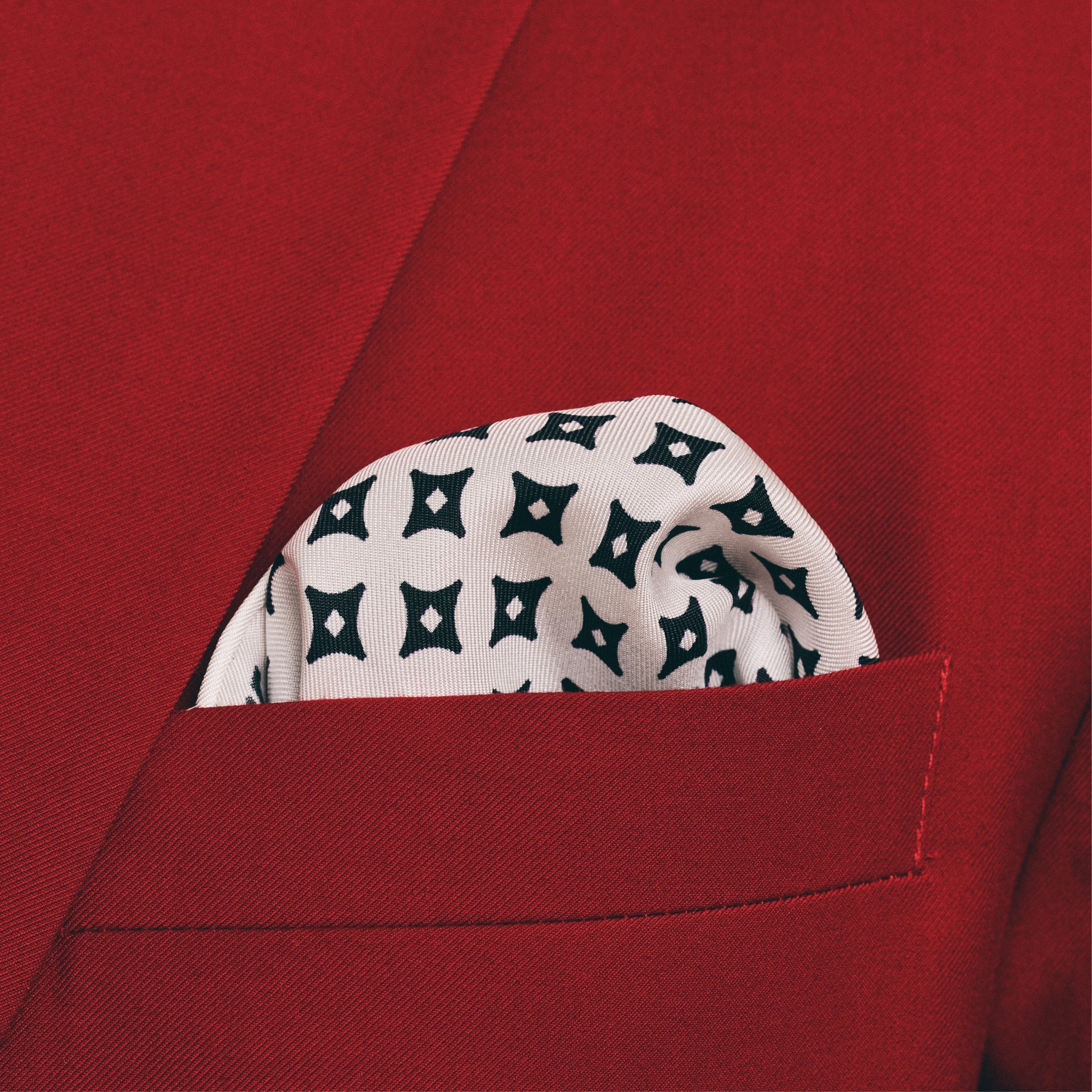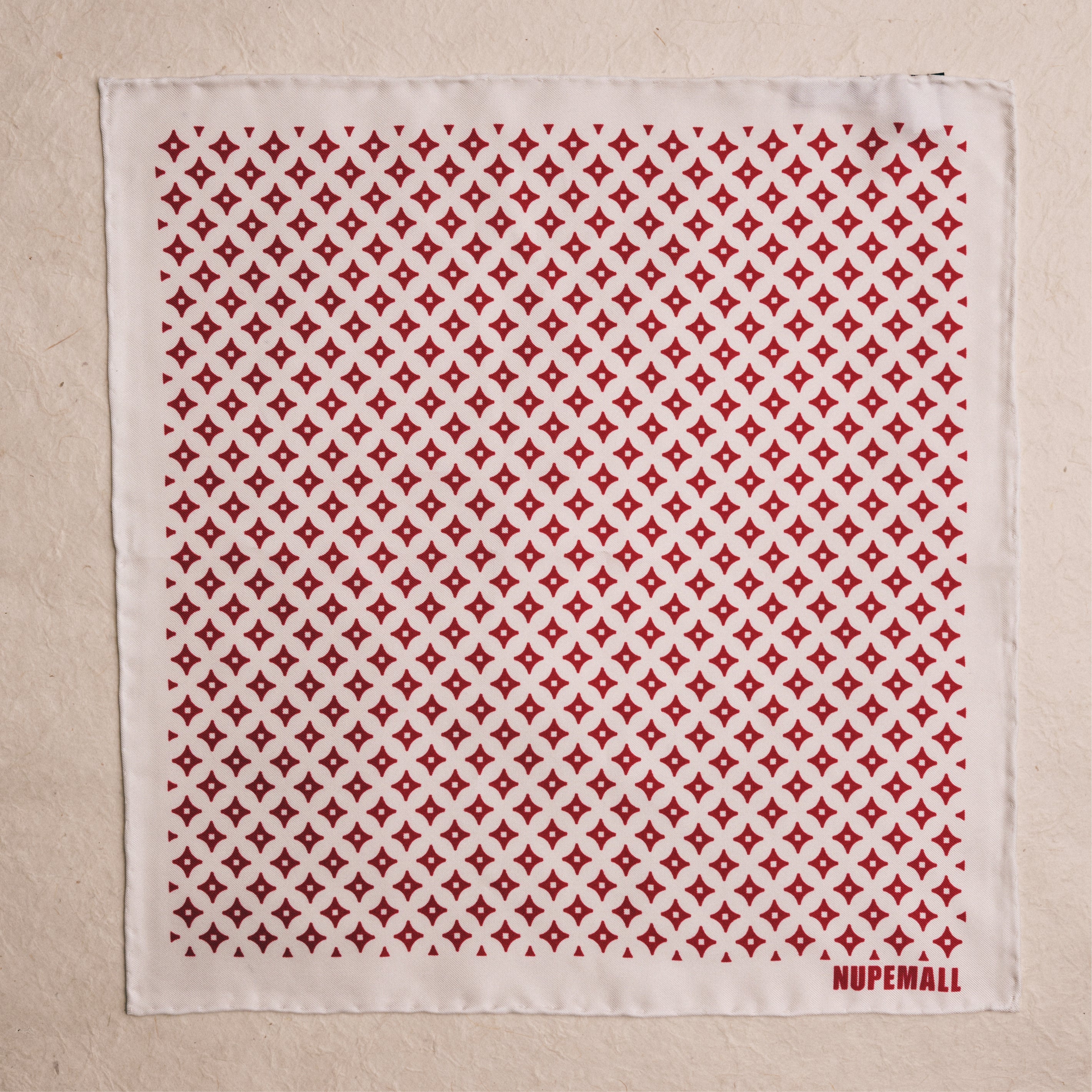 Diamond Star Pattern Pocket Square (White/Krimson)