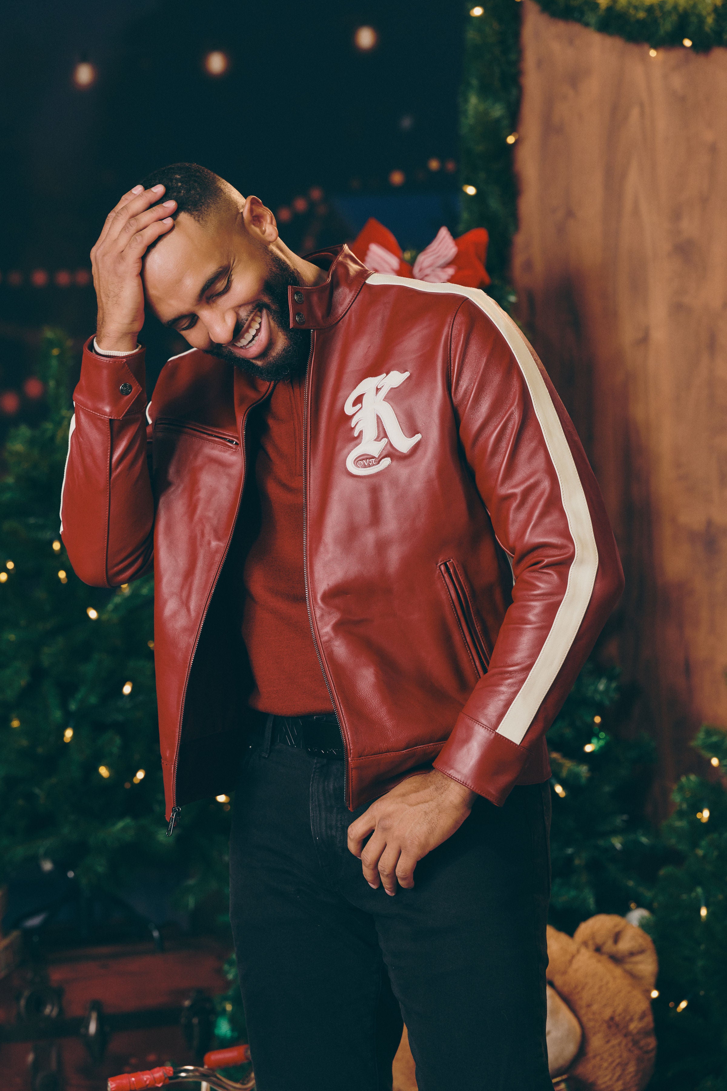 An Old English “K” applique anchors the left chest, while dynamic racing stripes along the sleeves and sides bring movement and energy to the design. Functional front zipper pockets are embroidered with Kappa Alpha Psi along the right side for a clean, elevated detail. The moto mock neck with custom snap buttons completes the silhouette with an authentic racing feel.