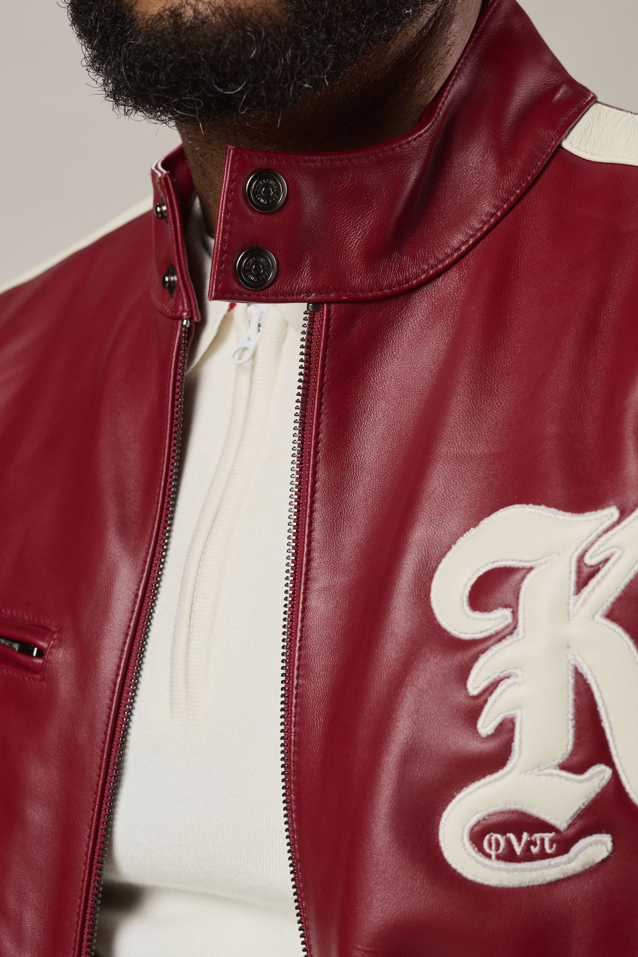 The Stripe Racing Jacket merges classic racing design with standout fraternity pride. Crafted from high-quality vegan leather, this jacket delivers a sleek, structured look with the perfect balance of edge and refinement.