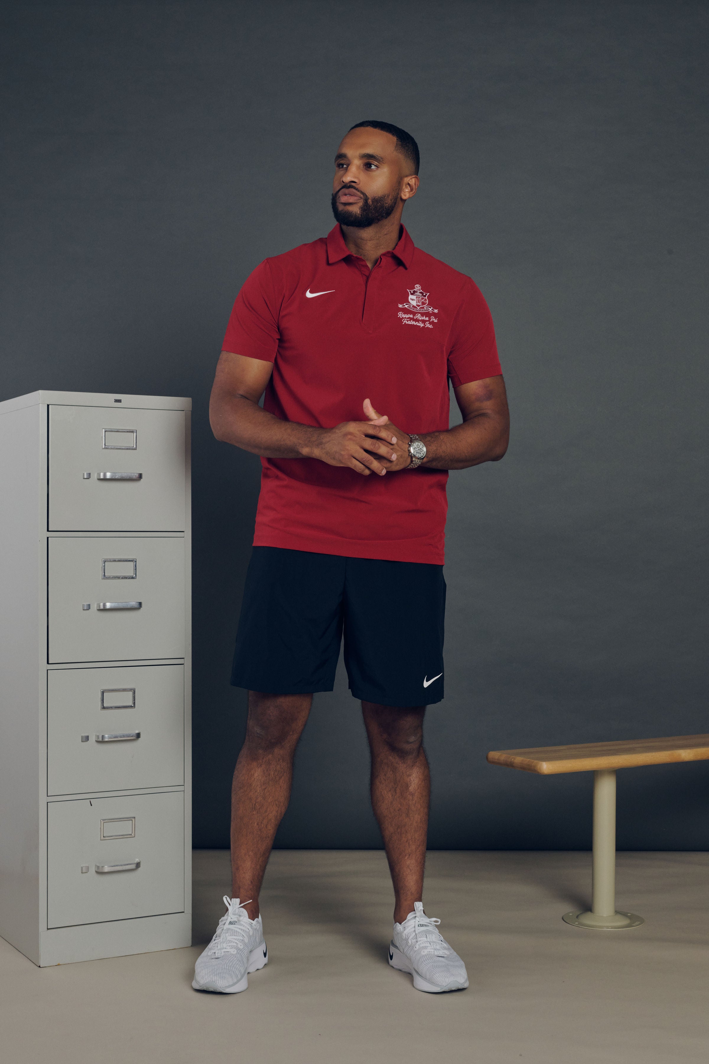 NIKE Coat of Arms Script Woven Dri-Fit Polo