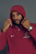 Lightweight layering meets timeless fraternity pride. This Nike quarter-zip hooded jacket is designed with breathable, performance-ready fabric that moves with you while keeping you comfortable in changing conditions. The adjustable hood adds extra coverage, while the quarter-zip style makes it easy to layer. Finished with a screenprinted Kappa Alpha Psi Coat of Arms and matching Nike swoosh, it’s the perfect blend of sport, style, and tradition.