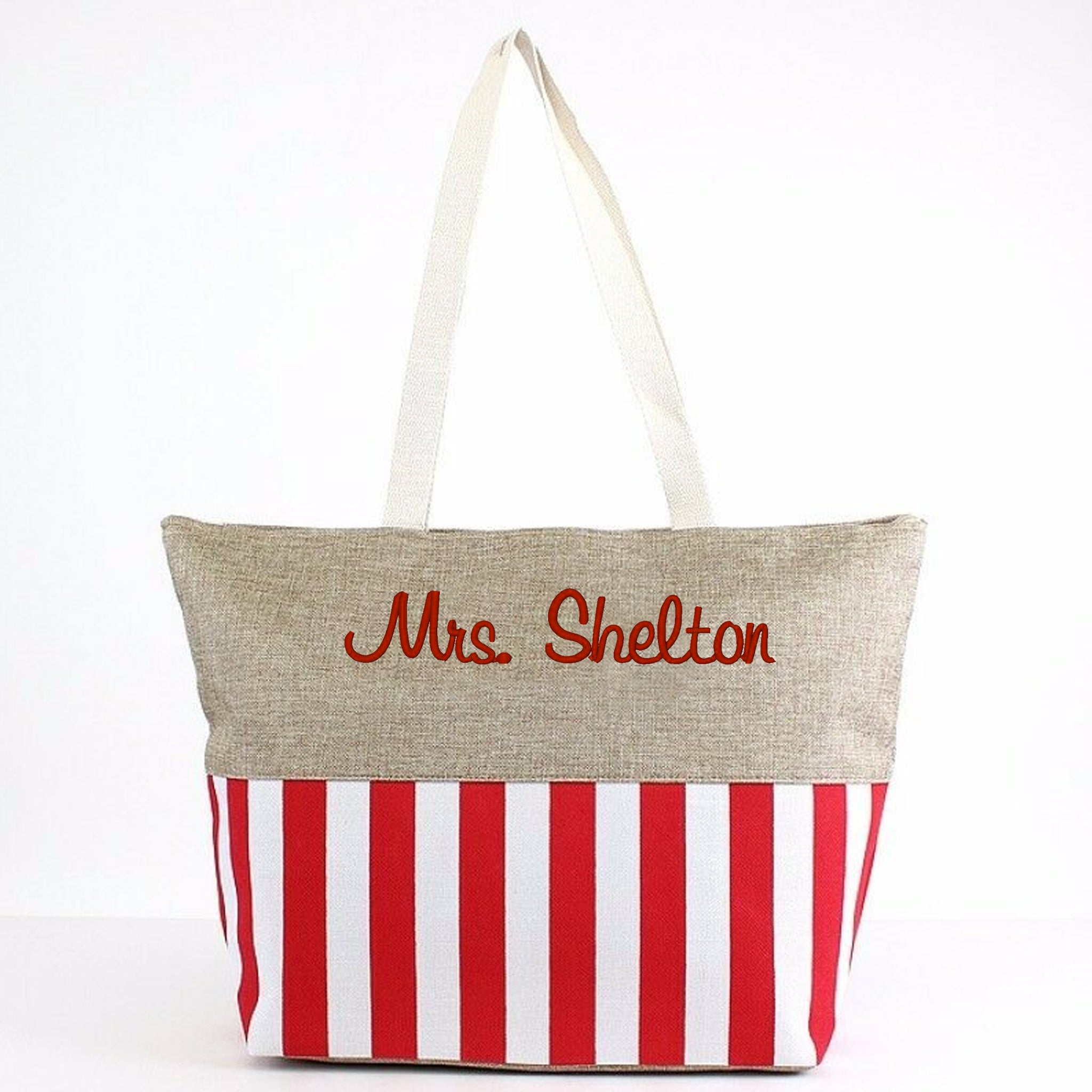 Personalized embroidery will read: Mrs. + LAST NAME Only.