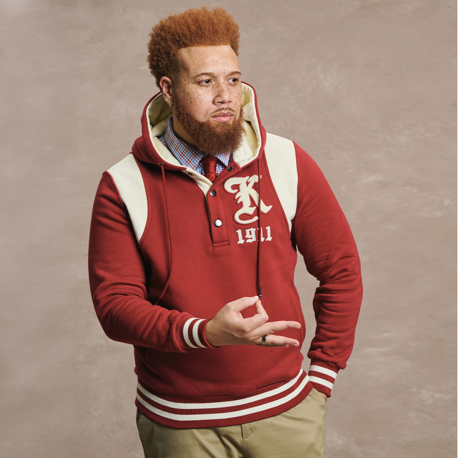 Vintage K Half Button Pullover Hoodie