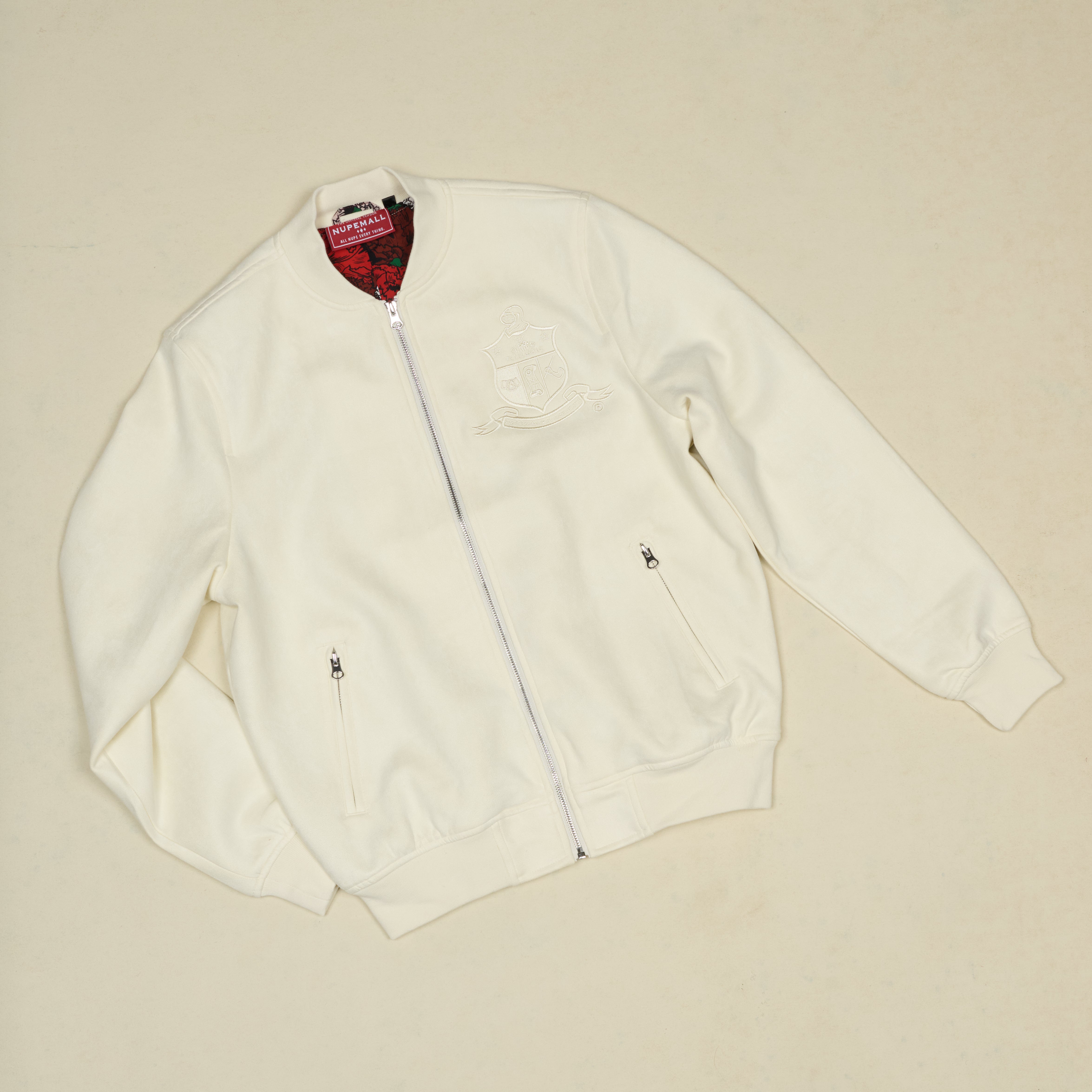 Tonal Vegan Suede Bomber Jacket (Cream)