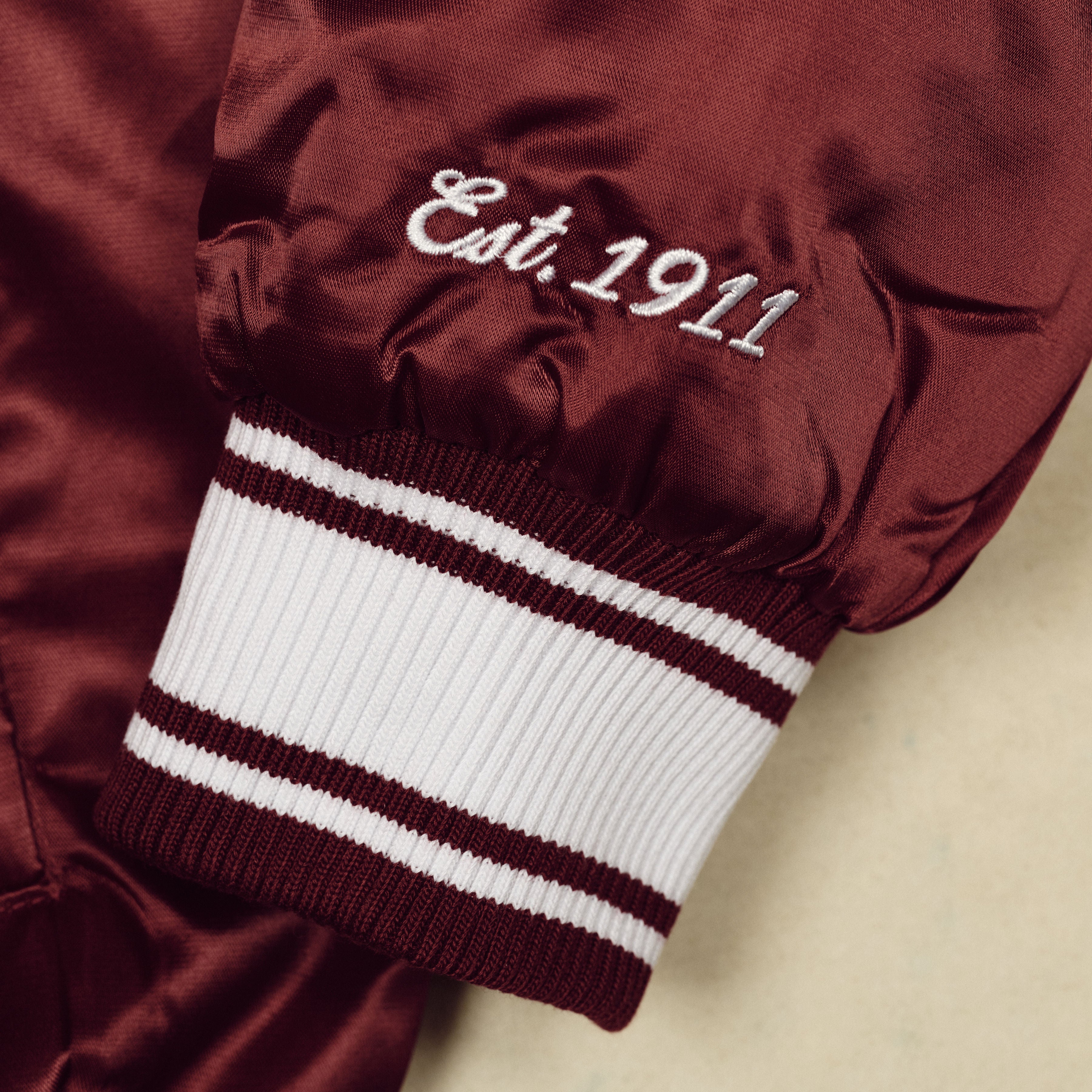 Step into timeless style with this "Starter style" varsity jacket. Made from sleek satin, it features a classic collared design with striped ribbed cuffs and waistband for an authentic throwback feel. A snap-front closure adds to its old skool appeal, while premium embroidery showcases the fraternity’s Coat of Arms on the left chest and bold Greek letters on the right. This is true staple for any proud brother of Kappa Alpha Psi.