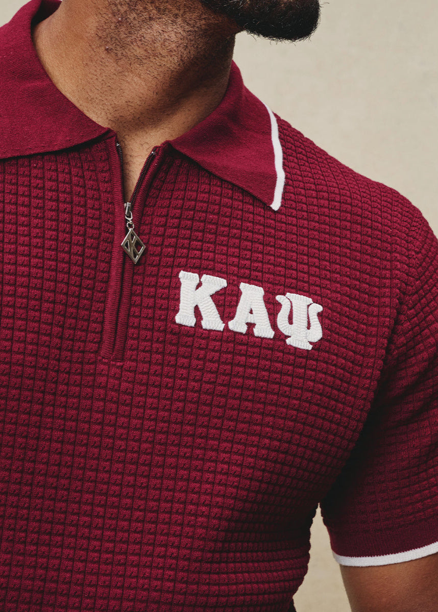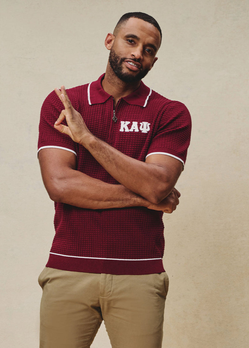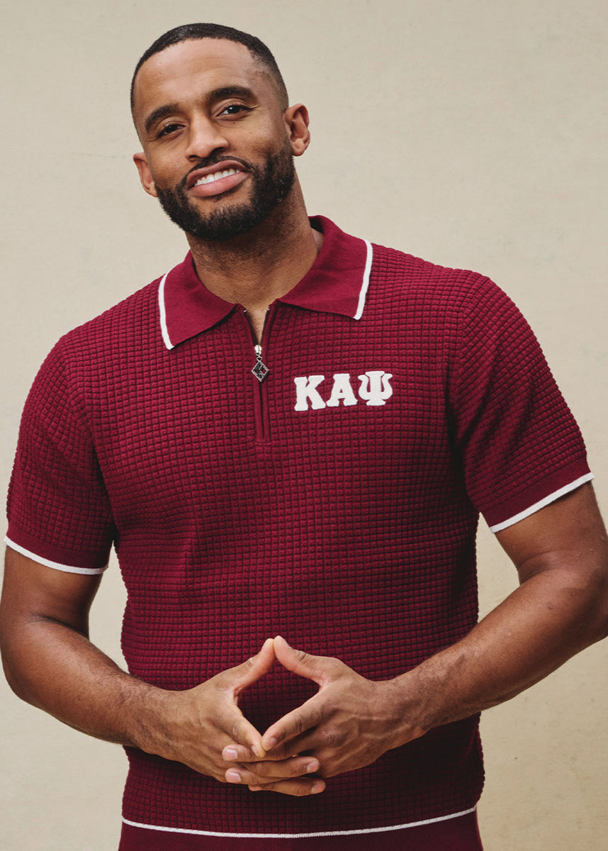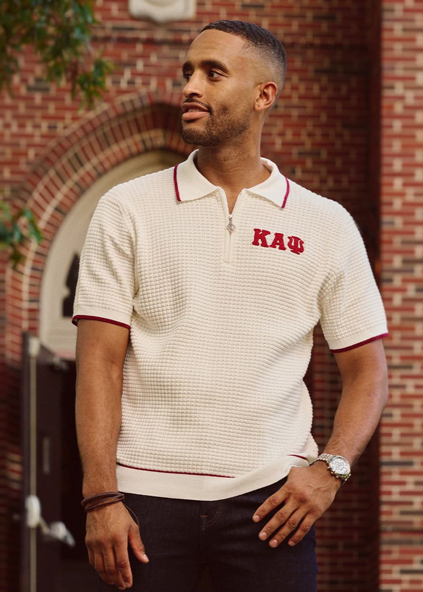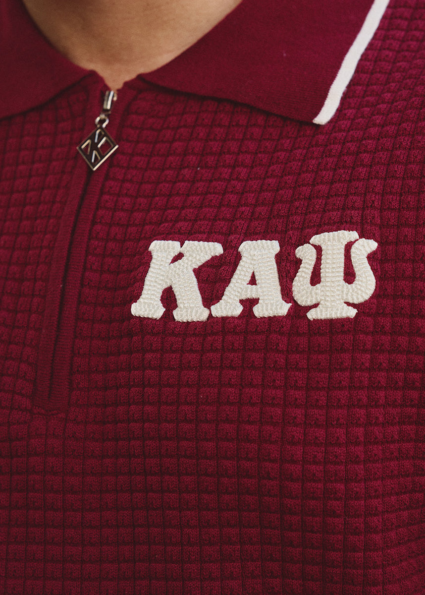 Greek Letter Waffle Knit Zip Polo (Krimson)
