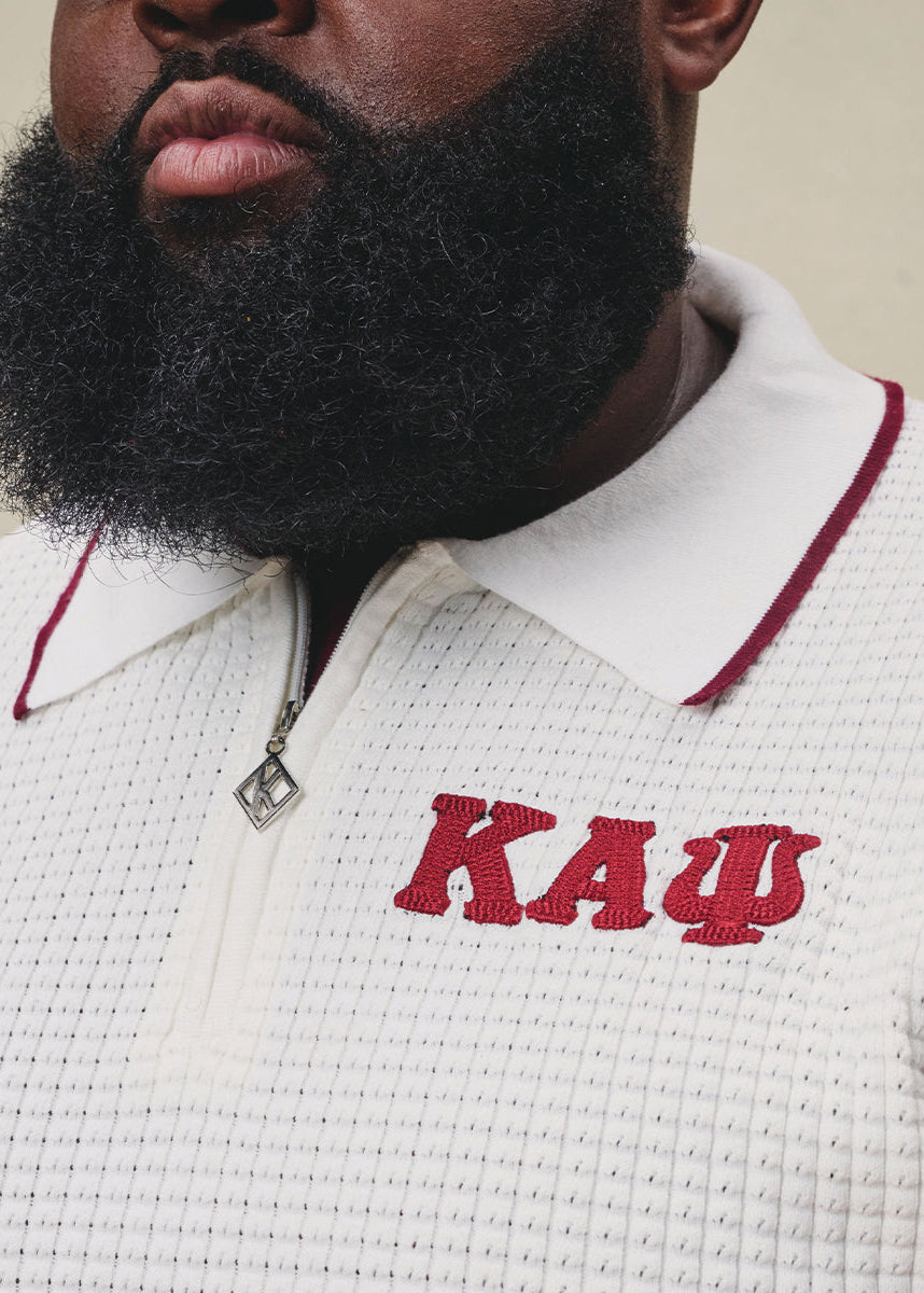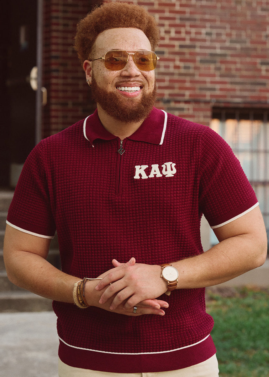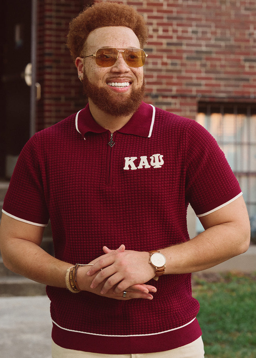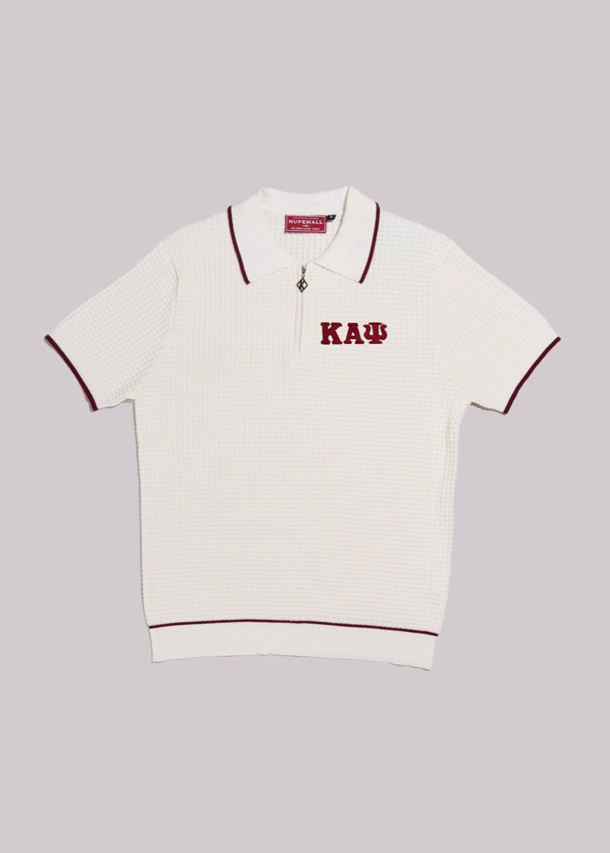 Greek Letter Waffle Knit Zip Polo (Krimson)