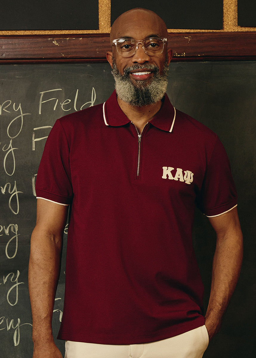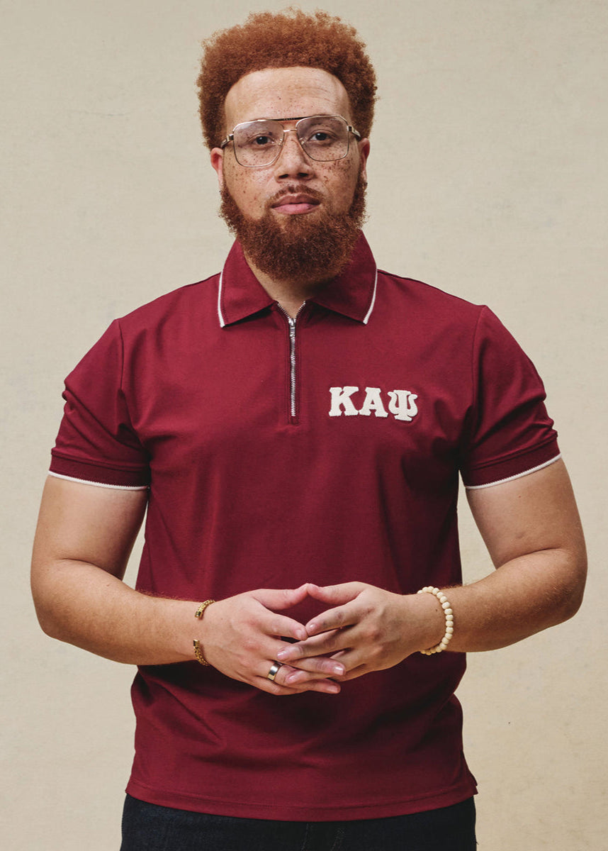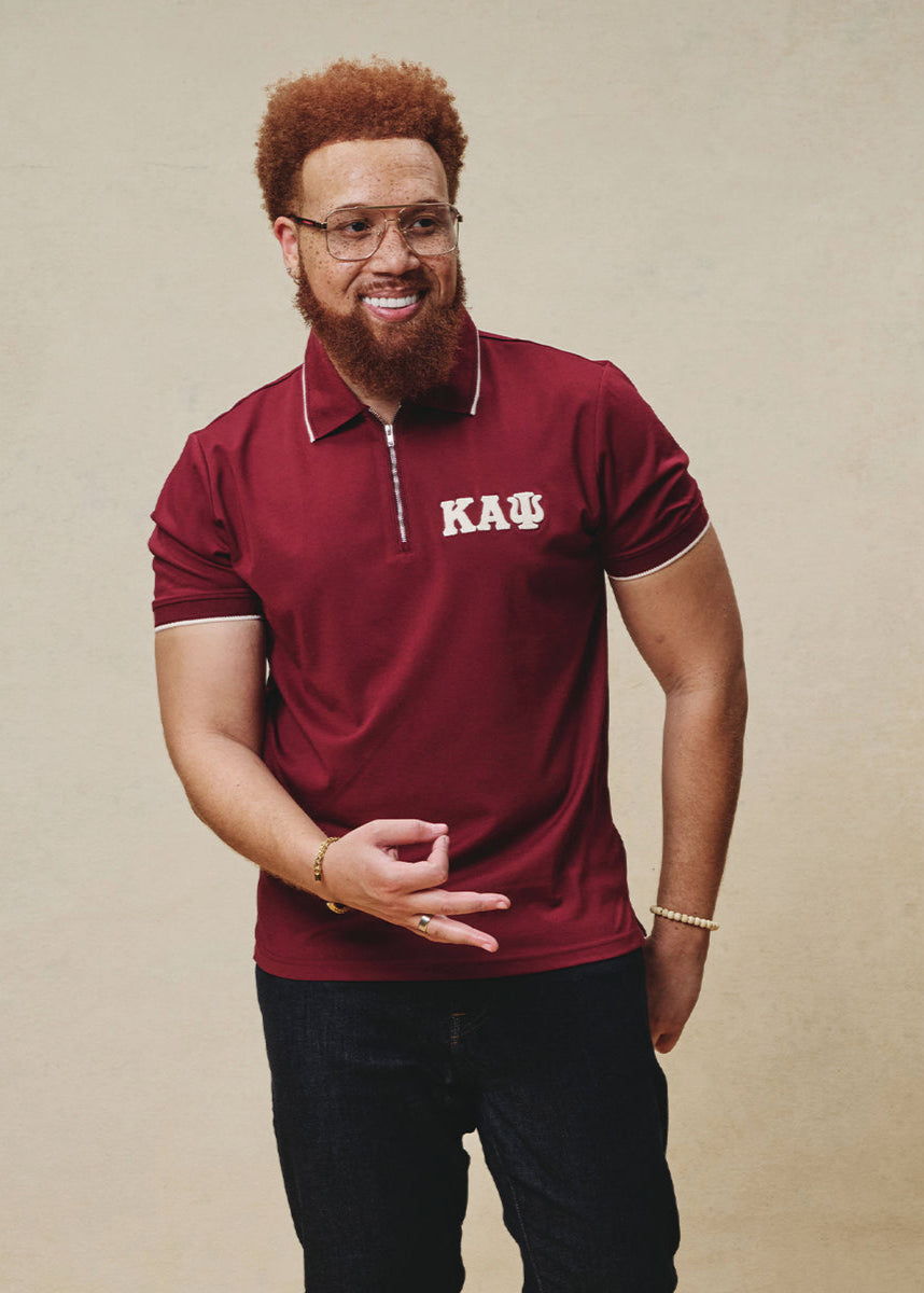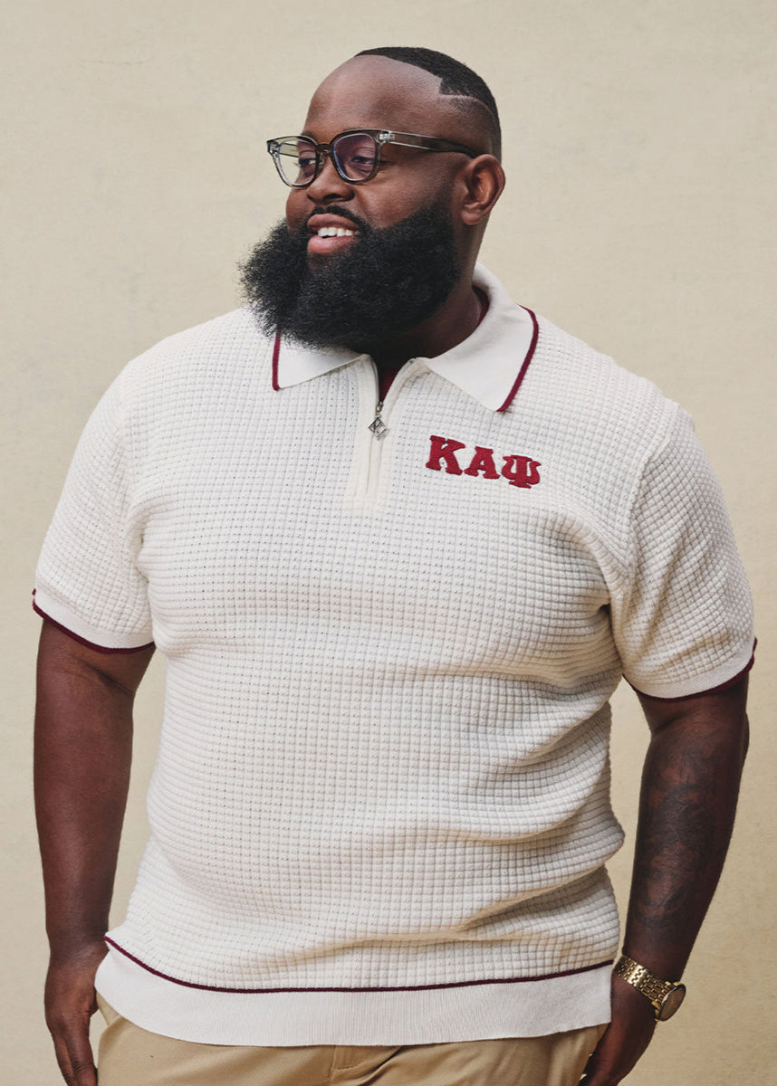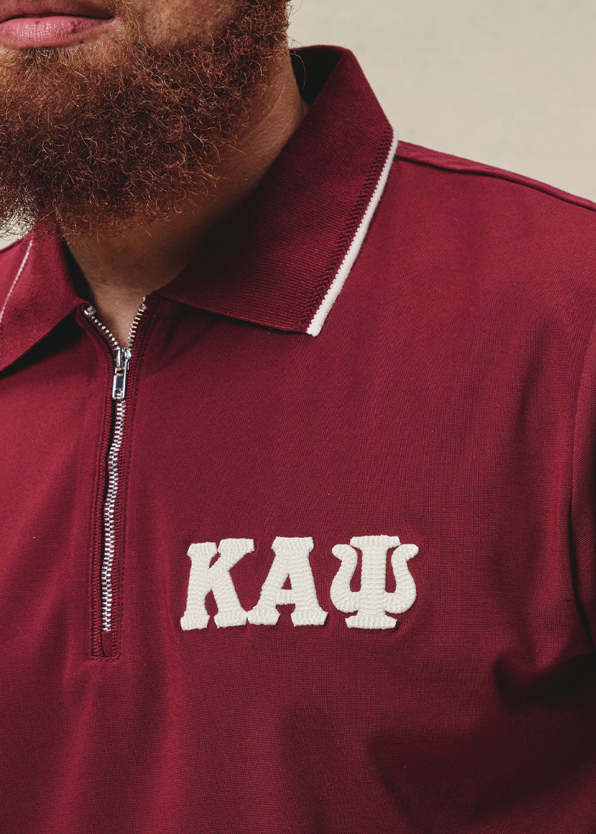 Greek Letter Waffle Knit Zip Polo (Krimson)