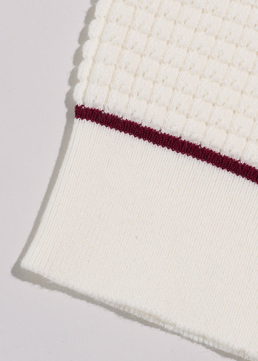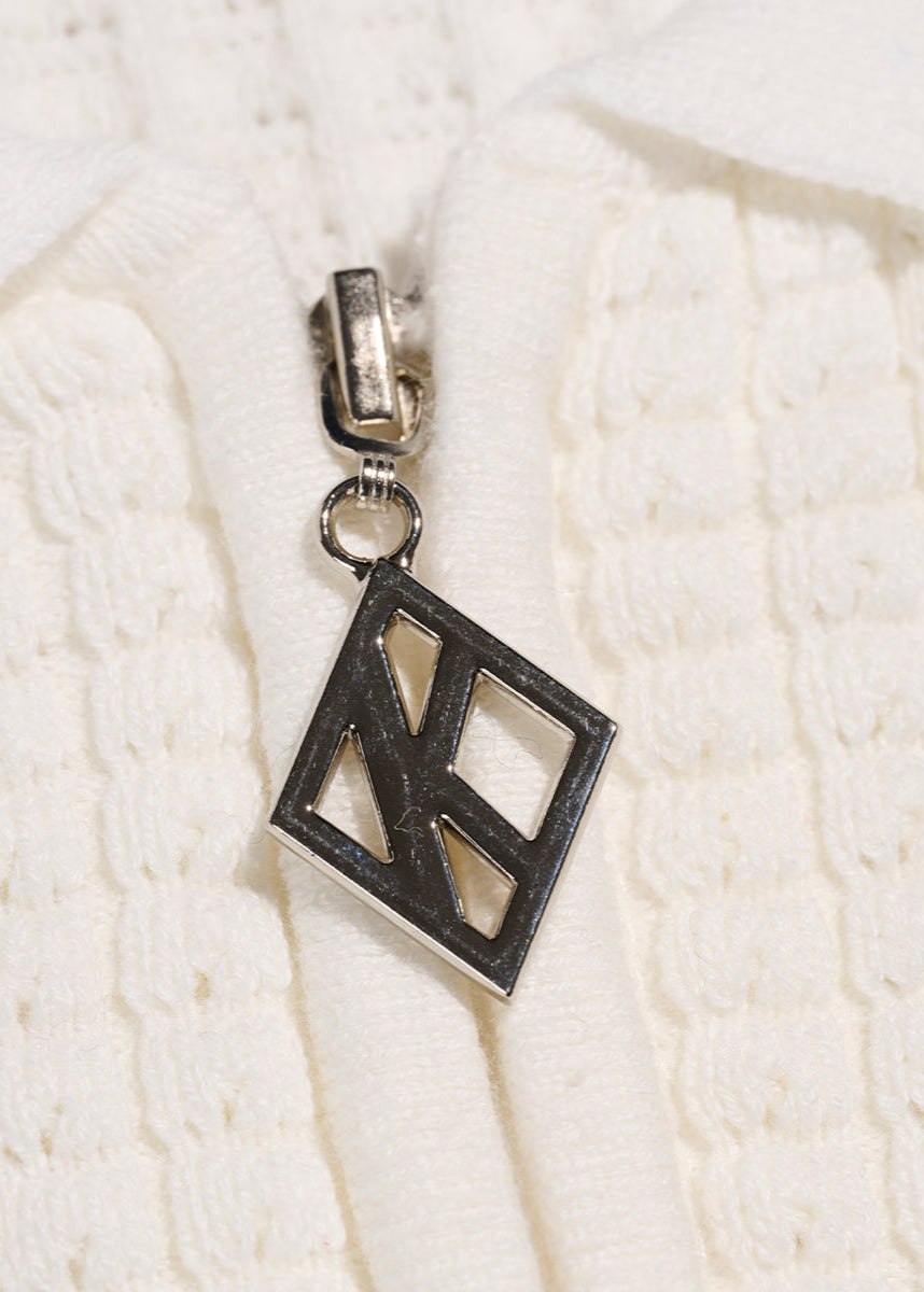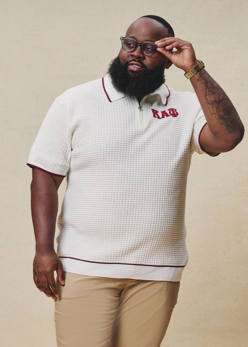 Greek Letter Waffle Knit Zip Polo (Cream)