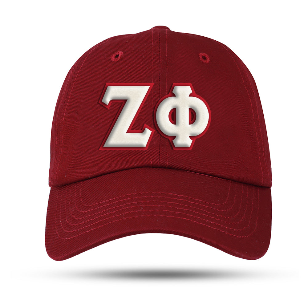 - Greek symbols are embroidered directly to item in 3D puff embroidery.