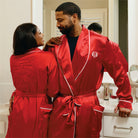 Step into elegance with the Kappa Alpha Psi Satin Robe, the perfect blend of luxury and fraternity pride. Designed for comfort and sophistication, this robe features a sleek satin finish accented with crisp white piping details for a distinguished look. The lightweight, flowing fabric drapes effortlessly, making it ideal for lounging in style. Whether layered over the matching pajama set or worn solo, this robe is a refined essential for relaxation, offering the perfect balance of comfort and class.